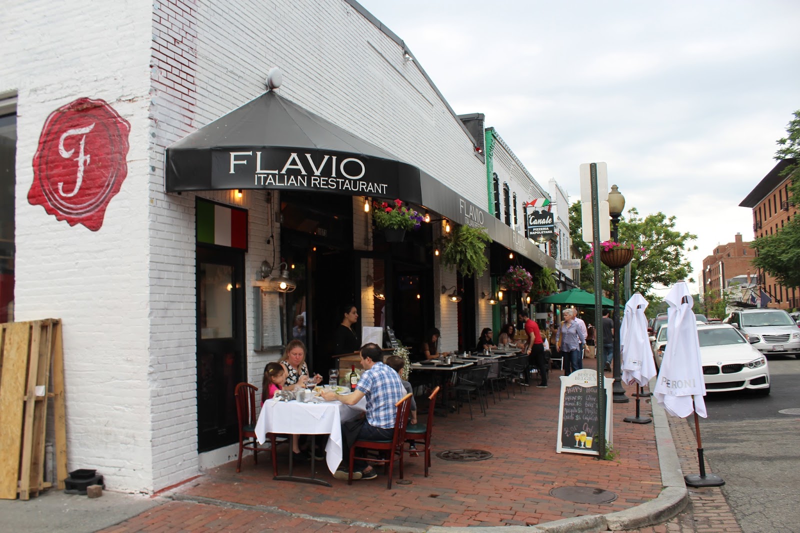 Flavio Restaurant, feasting on pizza, pasta, fish, and salad. You simply